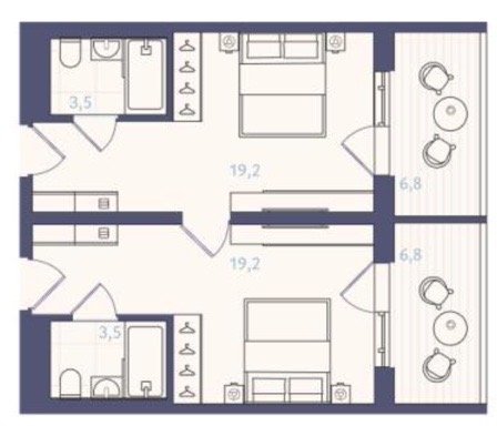 Площадь от 51.7 м2