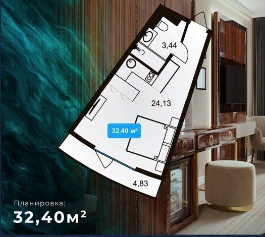 Площадь от 24.5 м2
