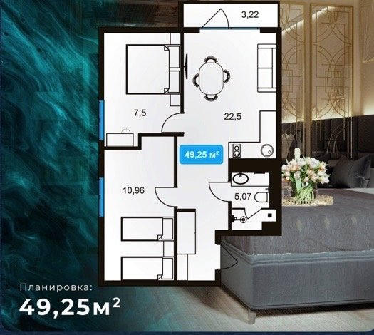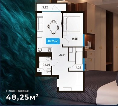 Площадь от 42.5 м2