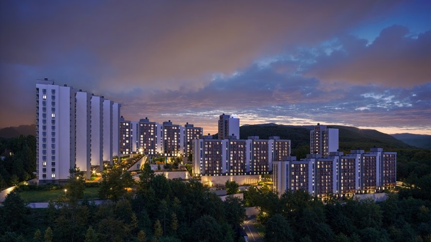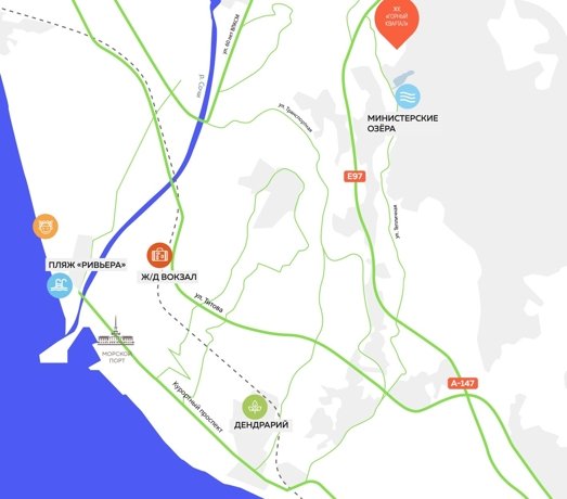 из курортных районов Сочи — в Хостинском, в окружении лесного массива и Министерских озёр. Идеальное сочетание для комфортной жизни: магазины, поликлиники, школы, спортивный зал — вся необходимая инфраструктура в непосредственной близости от ЖК «Горный квартал».
