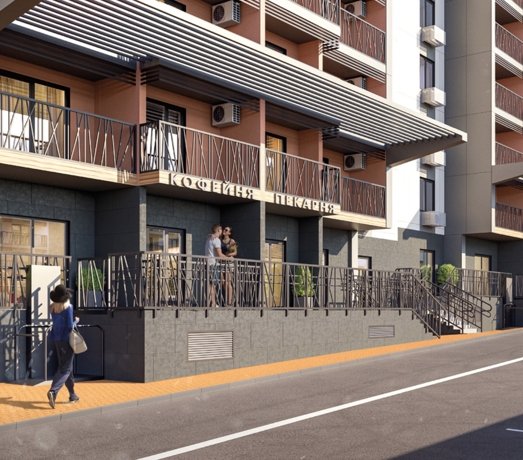 Супермаркет, салон красоты, кофейня, пекарня, кафе, детский развивающий центр, аптека, ателье, пункты выдачи товаров