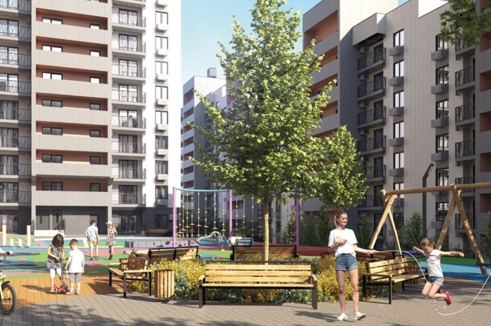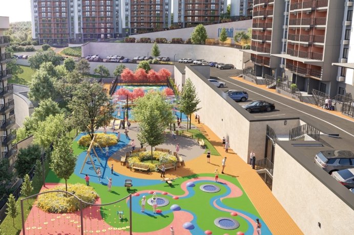 Прогулочные аллеи, зоны отдыха, детские игровые зоны с безопасным оснащением, спортивные площадки