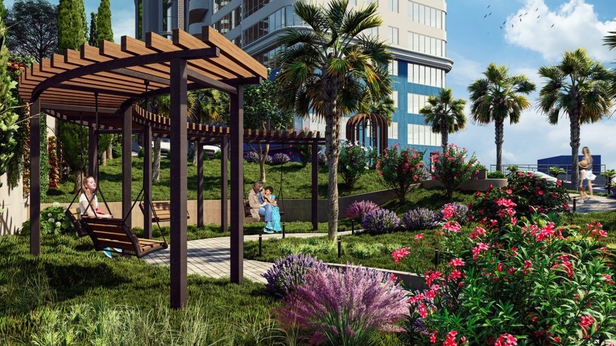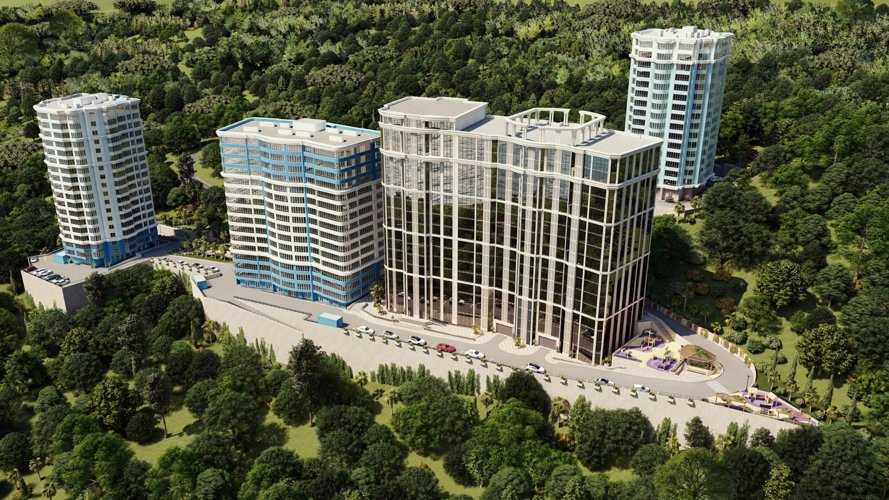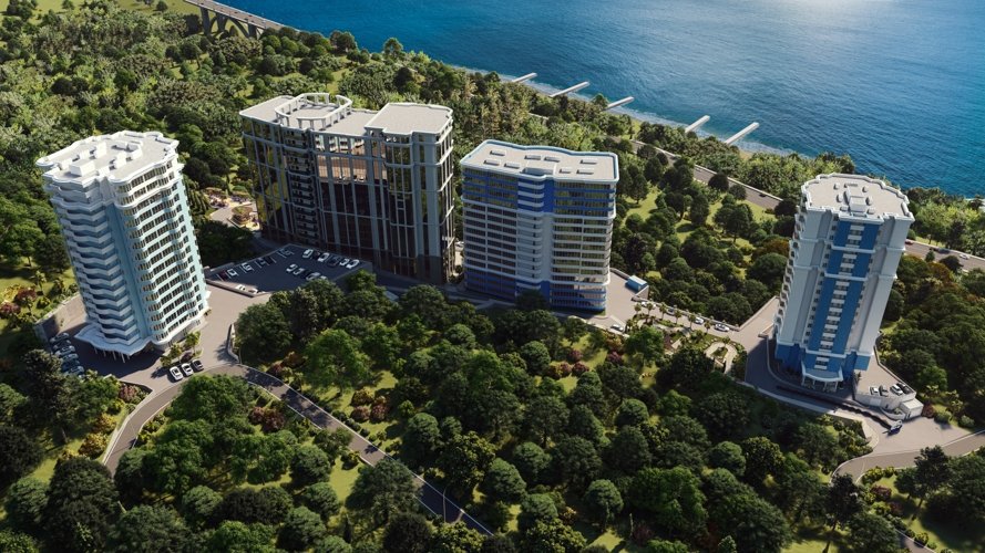 Два корпуса переменной этажности 16-19 этажей, с великолепным видом на море, с wellnes - инфраструктурой.